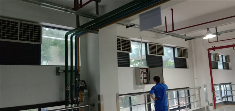 室外新風(fēng)在通過(guò)空調(diào)機(jī)的“多層波紋纖維疊合物”濕簾時(shí),由于一定比例的水蒸汽混入空氣,因此送入房間的新風(fēng)將增加房間內(nèi)空氣的濕度。由于科瑞萊節(jié)能環(huán)保空調(diào)機(jī)適用場(chǎng)所為開(kāi)敞式或半開(kāi)敞式,室外新風(fēng)經(jīng)空調(diào)機(jī)降溫、加濕后源源不斷地進(jìn)入房間,房間內(nèi)的污濁空氣則被排出室外,從而保證了室內(nèi)空氣的清凉、新鮮,達(dá)到了凈化室內(nèi)空氣的目的。