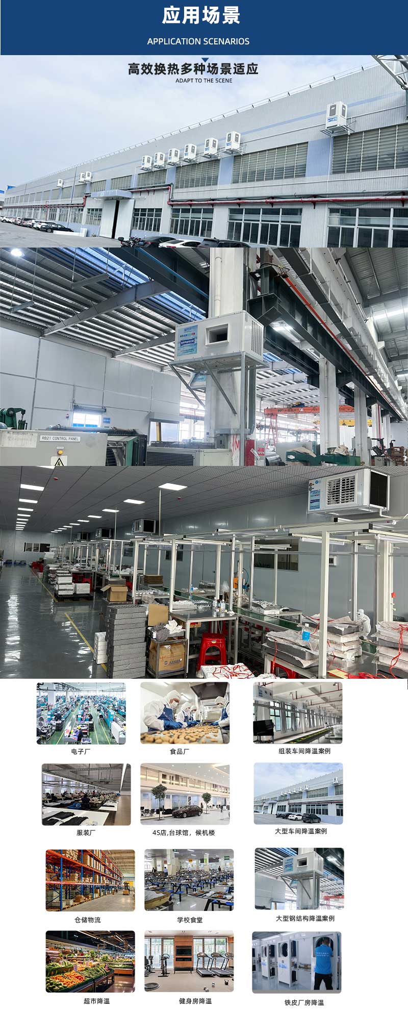 7.內機安裝靈活,可整體降溫,崗位送風,中央軟管送風、落地、掛墻、室外全新風安裝。