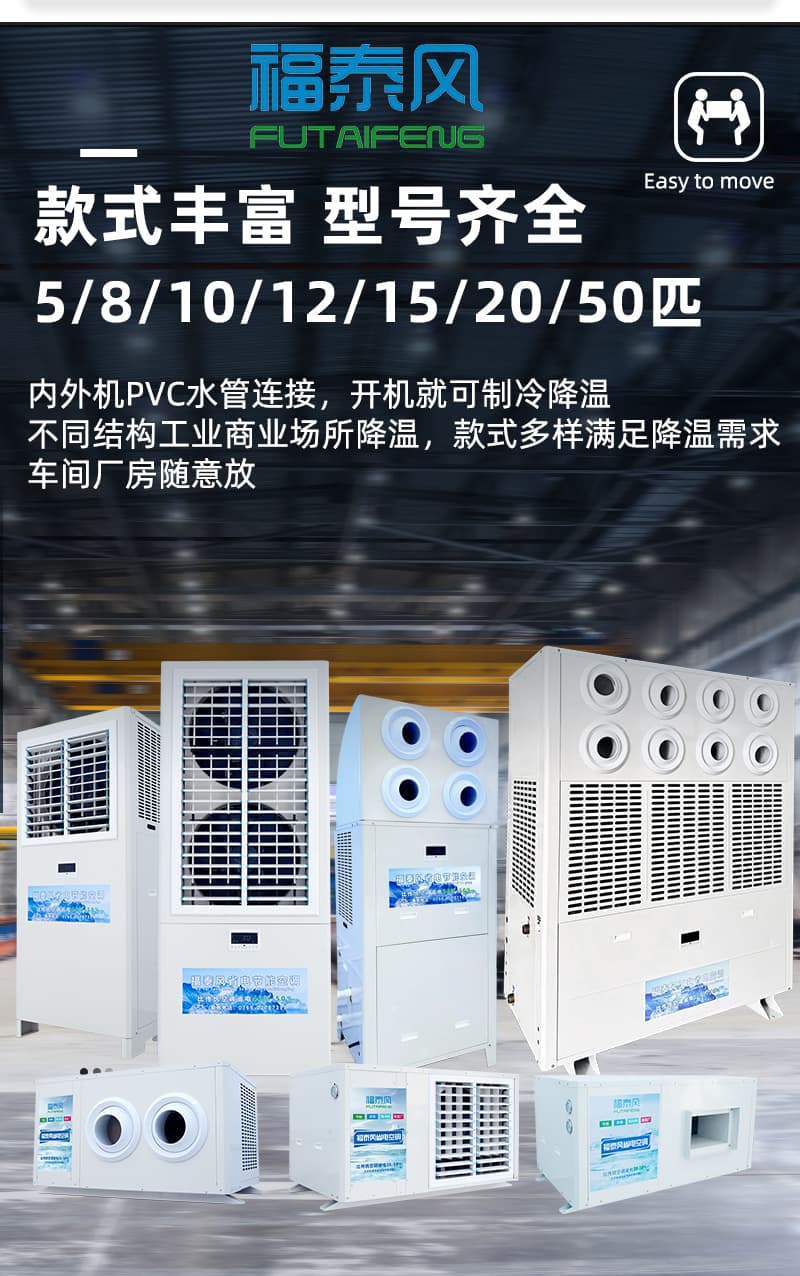 款式多樣有吊掛式,射流款,立式,管道式工業(yè)省電空調(diào)滿足不同車間降溫需求;