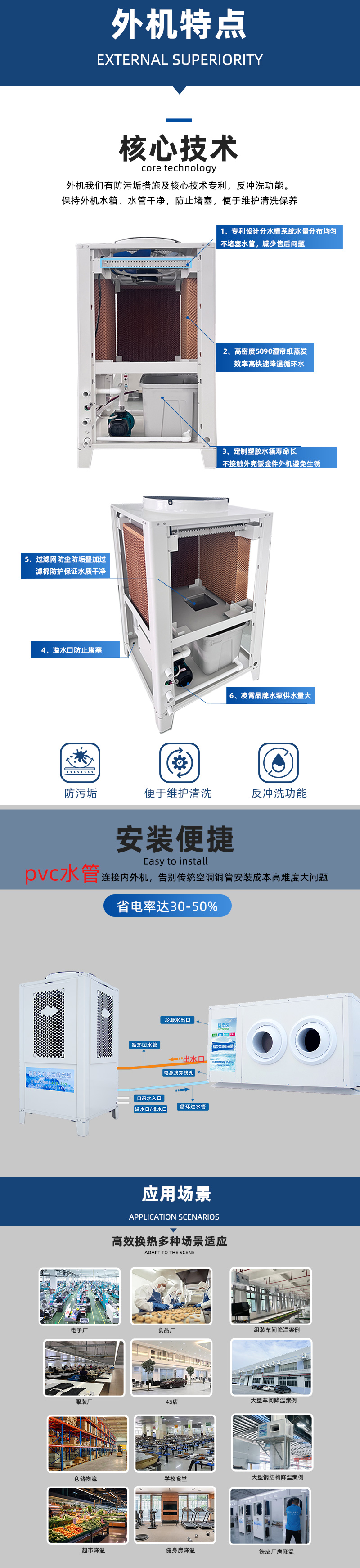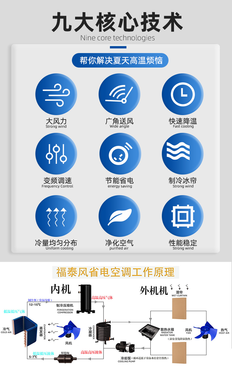 款式多樣有吊掛式,射流款,立式,管道式工業(yè)省電空調(diào)滿足不同車間降溫需求;