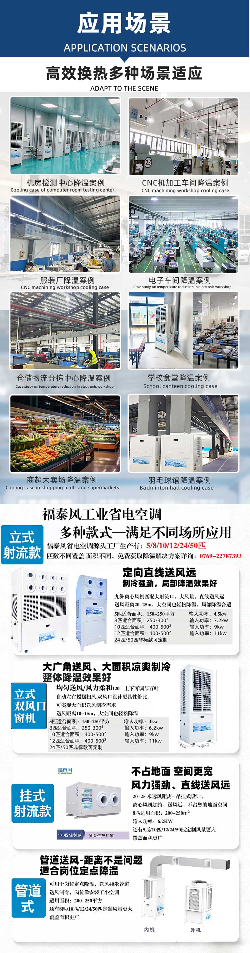 款式多樣有吊掛式,射流款,立式,管道式工業(yè)省電空調(diào)滿足不同車間降溫需求;