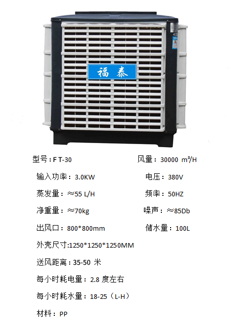 福泰環(huán)??照{(diào)性能穩(wěn)定在越炎熱的天氣下降溫的效果越好。適用于開敞式及半開敞式環(huán)境,能夠直接輸送自然風(fēng)及輸送降溫后的涼風(fēng)。室外新鮮空氣經(jīng)福泰蒸發(fā)式冷氣機(jī)過濾、降溫后向室內(nèi)源源不斷的大量輸送,將室內(nèi)帶有異味、粉塵和混濁悶熱的空氣排出室外,同時(shí)兼顧換氣降溫及增加空氣含氧量等多種效果。